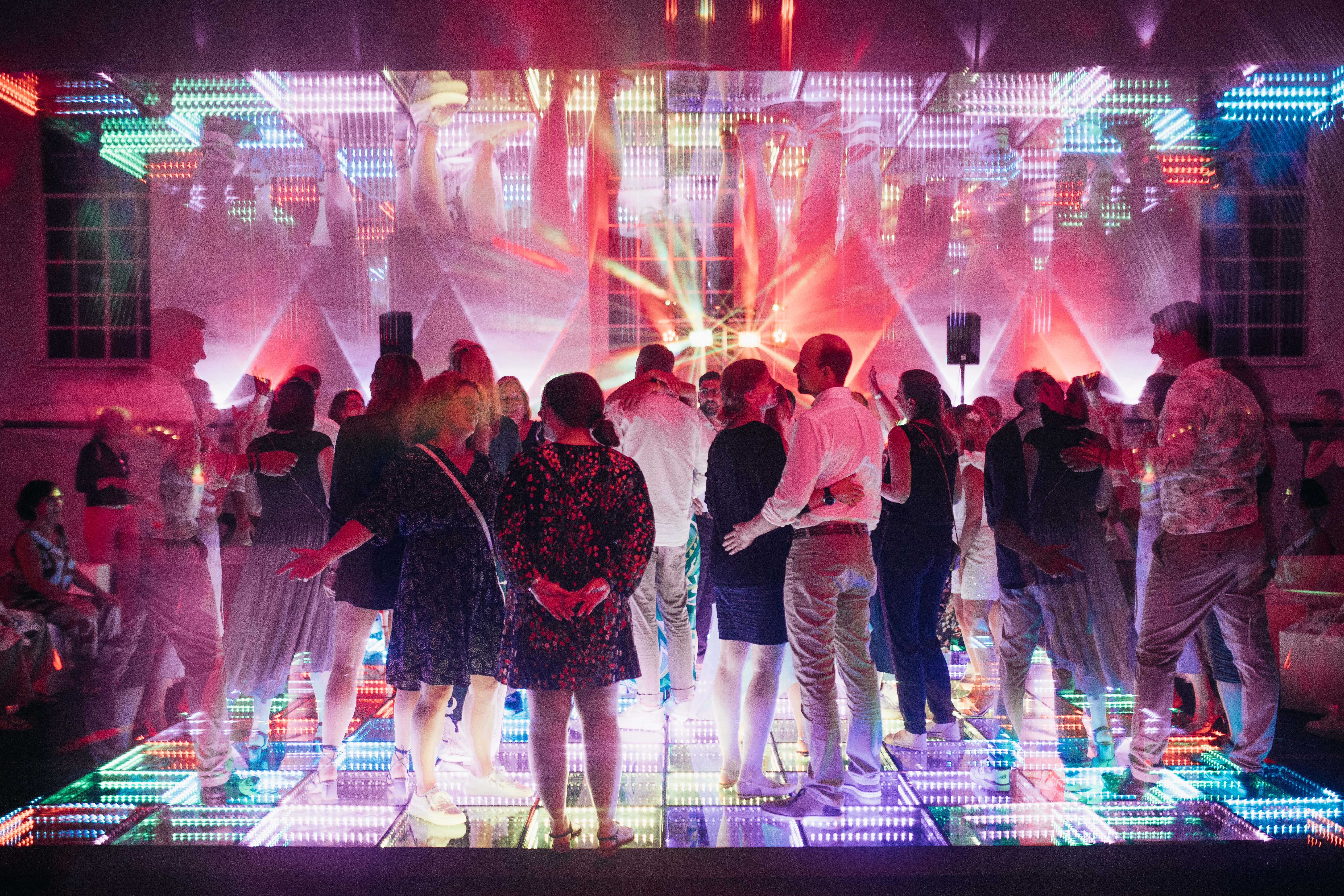 Unsere leuchtende Tanzfläche sorgt für ganz besonderen Tanzspaß. Tausende LEDs in kombination mit einem Doppelspiegel im Boden sorgen für einen einzigartigen Effekt, welchen keine andere Tanzfläche bietet. Durch eine große Auswahl an schnellen oder langsamen Animationen und Farbwechseln lässt sich der Boden an jede Situation anpassen, optional auch per XLR Anschluss vom DJ oder dessen Musik selbst.